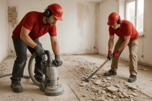 Mit spezialisierten Fräsen, Schleifmaschinen und Abbruchgeräten entfernen wir sämtliche Altbeläge, Estrichschichten und Kleberreste. Je nach Beschaffenheit des Untergrunds kommen unterschiedliche Verfahren zum Einsatz, um optimale Ergebnisse bei maximaler Schonung der Bausubstanz zu erzielen.